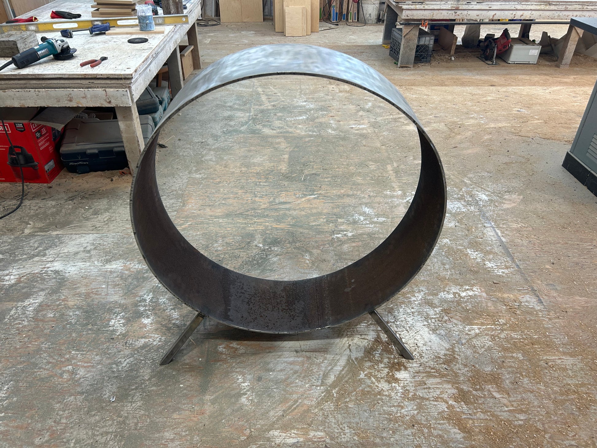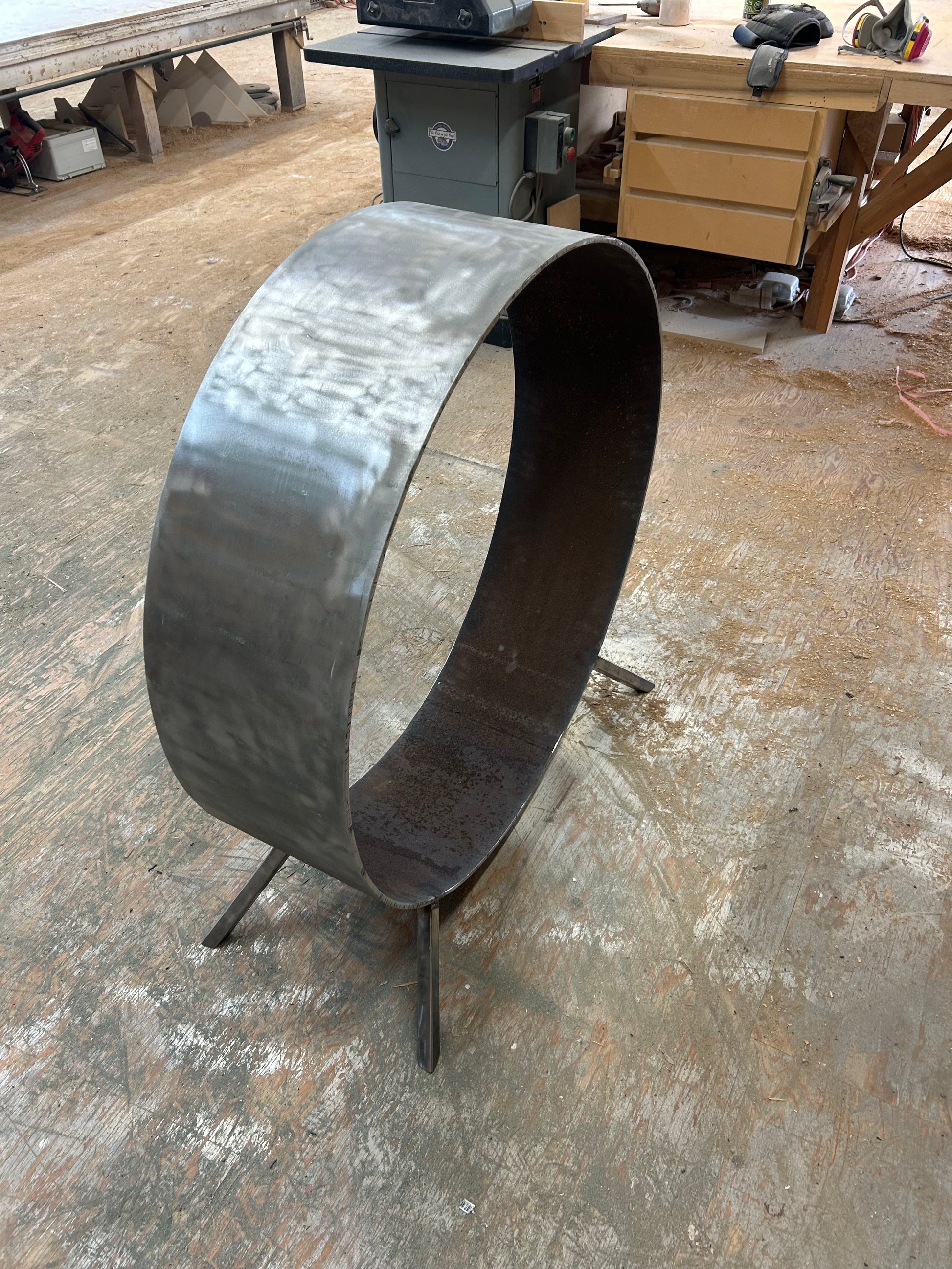 Re-purposed propane tank Fire Wood Rack. 1/4" steel, 37" diameter. Natural rusted finish will last a lifetime.