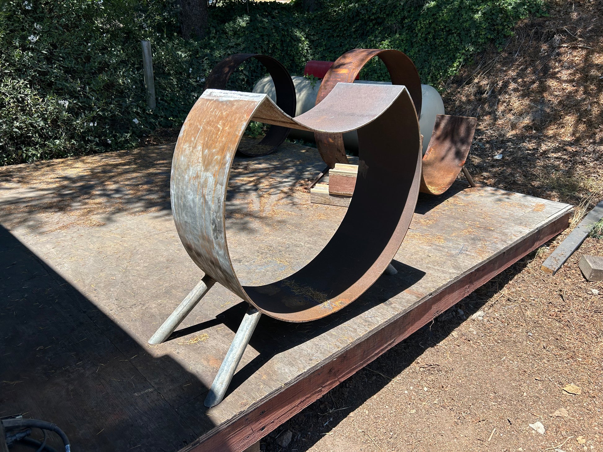 Re-purposed propane tank Fire Wood Rack. 1/4" steel, 37" diameter with kindling cradle. Natural rusted finish will last a lifetime.