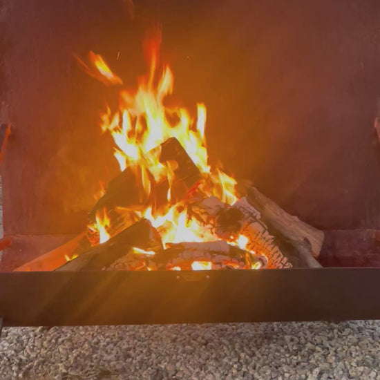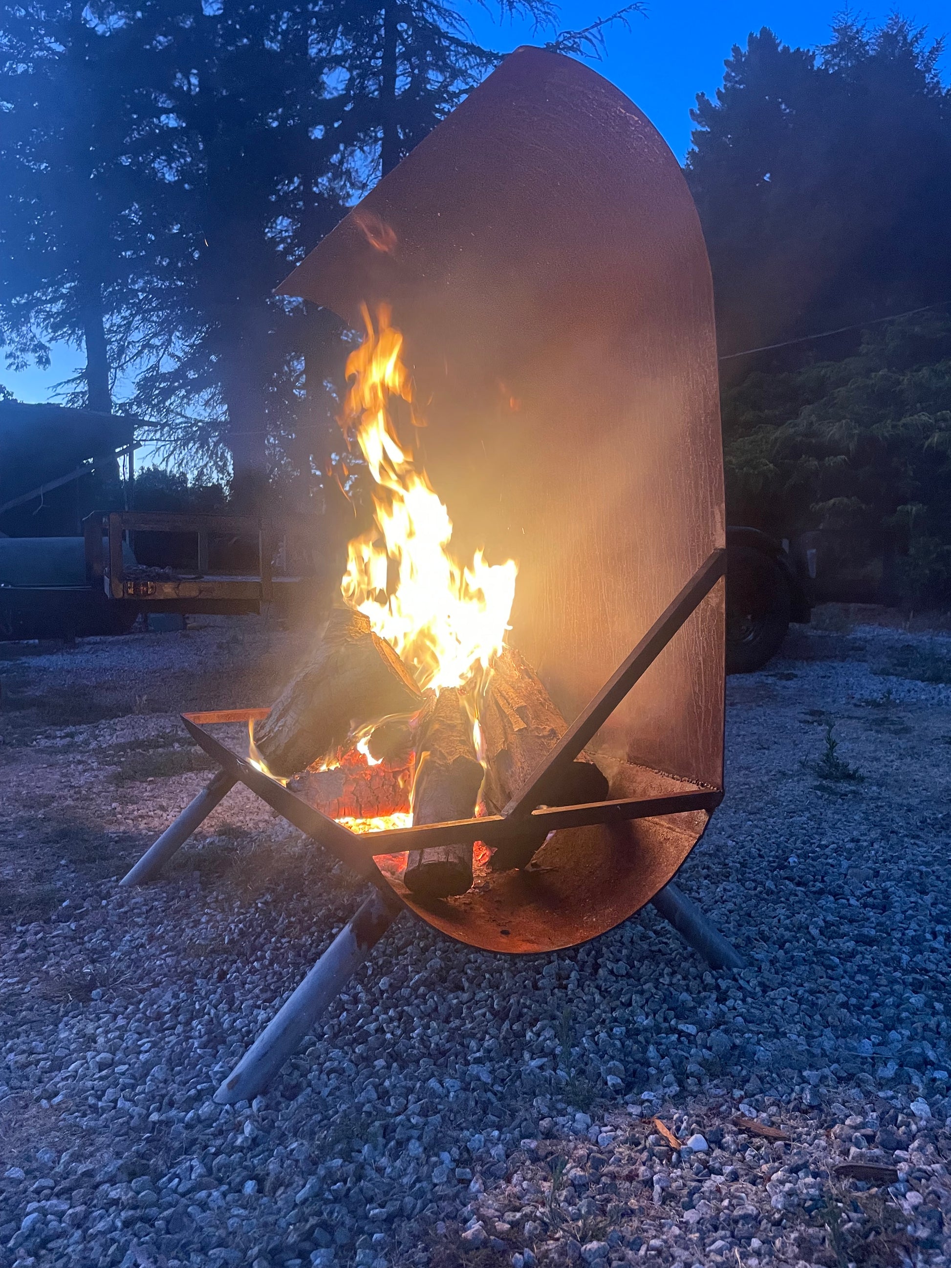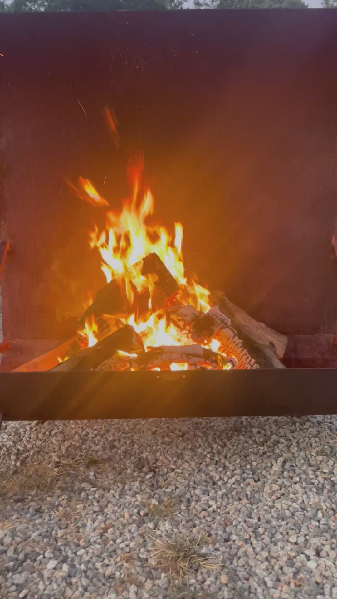 48"w x 54"ht wave-style fire pit. 10g steel wave back radiates heat, you'll be the only one in the neighborhood with one of these! Natural rusted finish will last a lifetime.